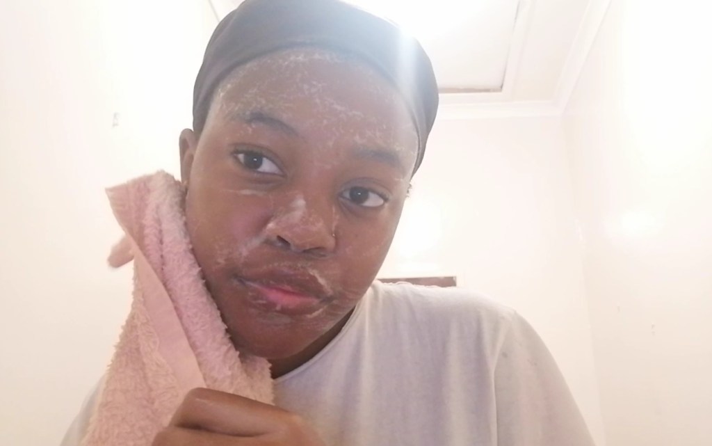 I start by wetting my face with lukewarm water. Wetting my face as a base helps so that the face wash is easier to apply. I then squeeze a small amount of my face wash on my palms. It differs though because in the morning I apply it on my hand and gently wash my face. where at night I apply it on my face cloth and scrub my face knowing that during the day I have gathered a lot of impurities on my face.
