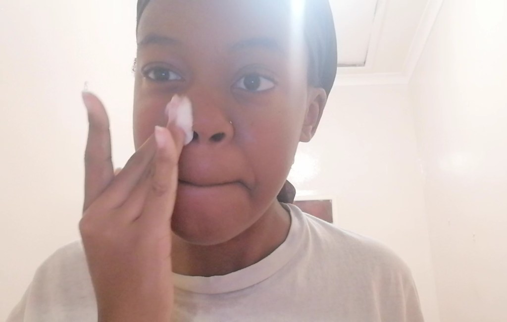 After completely washing my face and drying it, I move on to the toner. Now with the toner you’ll also want to make sure that you have a cotton roll or cotton balls to apply with (a tissue or toilet paper is not actually an alternative though so don’t consider it). I simply pour a small amount onto the cotton ball then dab it all over my face. After I feel that the toner has hydrated all parts of my face I rub the cotton ball all around, making sure to really gather all the excess impurities.
